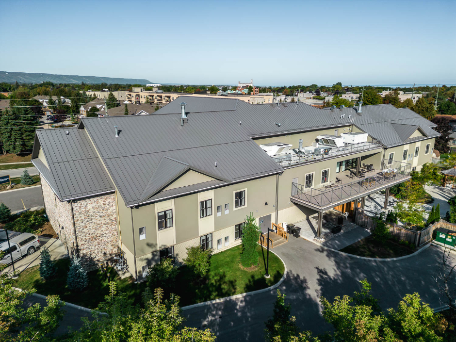 Les Bertram & Sons served as the construction manager, the drywall contractor, and millwork provider for the development of a new 52,000 square foot long-term care facility comprising (36) units. The building features a non-combustible construction framework consisting of steel columns and delta beams, complemented by a Comslab flooring system and prefabricated wall paneling system. The structure is capped by a metal truss roof. The project scope encompassed the installation of new finishes, including millwork, wood wall paneling, and drywall corridor bulkheads, as well as vinyl plank flooring and Altro white rock paneling. Additionally, the construction included the integration of a new curtain wall system and windows, along with elevator installation. Furthermore, Les Bertram & Sons oversaw the implementation of new air handling and mechanical systems, fire suppression and electrical distribution and lighting to ensure optimal functionality and comfort throughout the facility.
